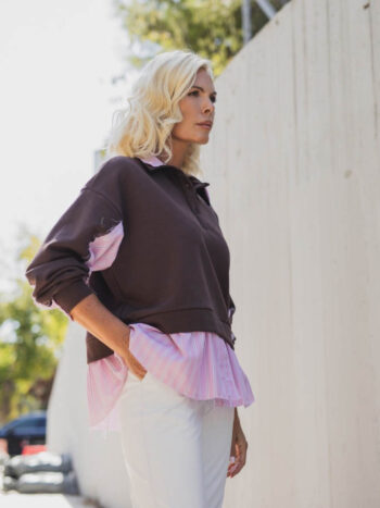 Μπλούζα σε ριχτή γραμμή με τελειώματα από ποπλίνα