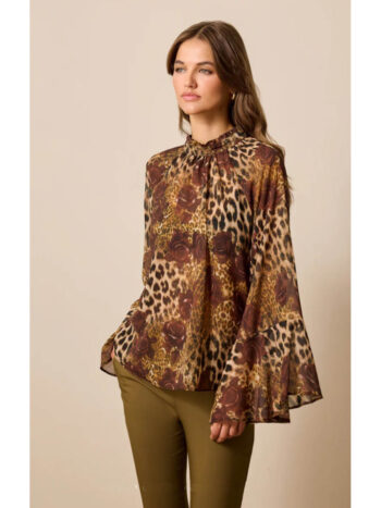 Μπλούζα μακρυμάνικη εμπριμέ ημιδιαφανή