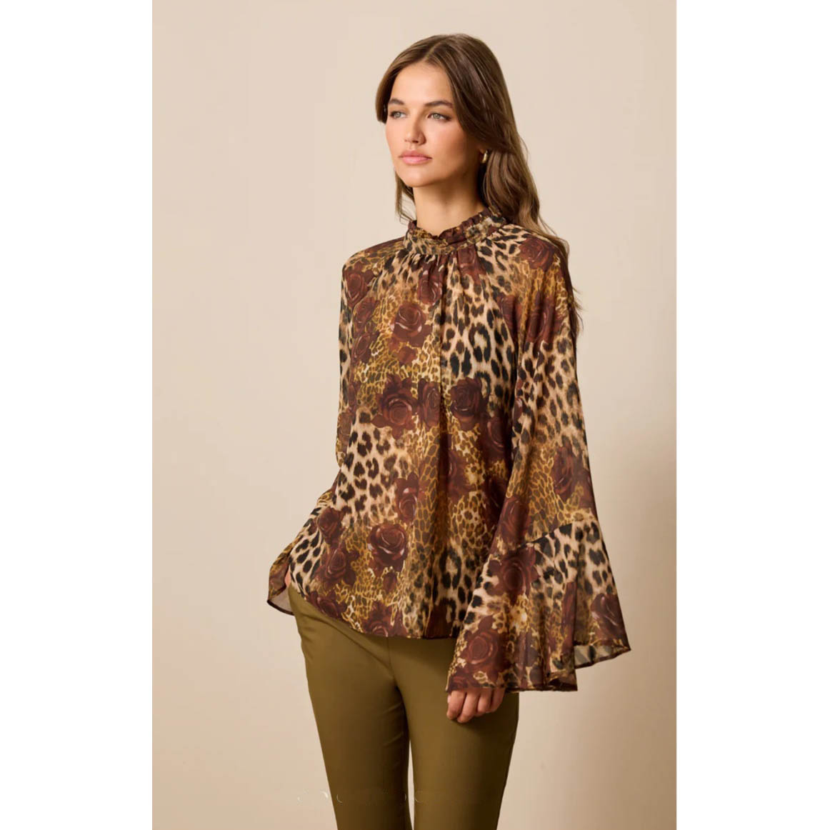 Μπλούζα μακρυμάνικη εμπριμέ ημιδιαφανή